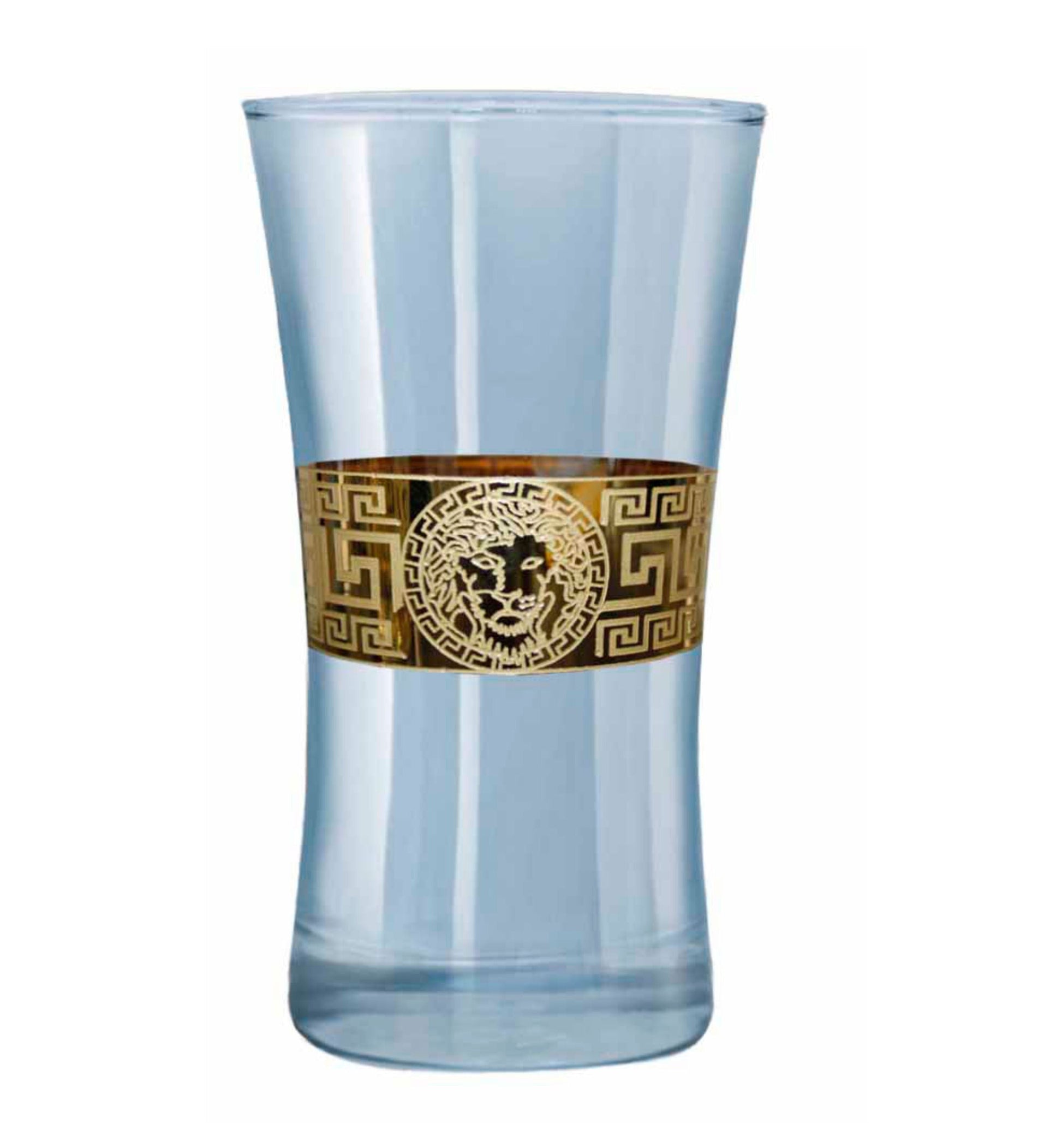 Blue Luxury Glass with Golden Lion Emblem & Greek Key Design