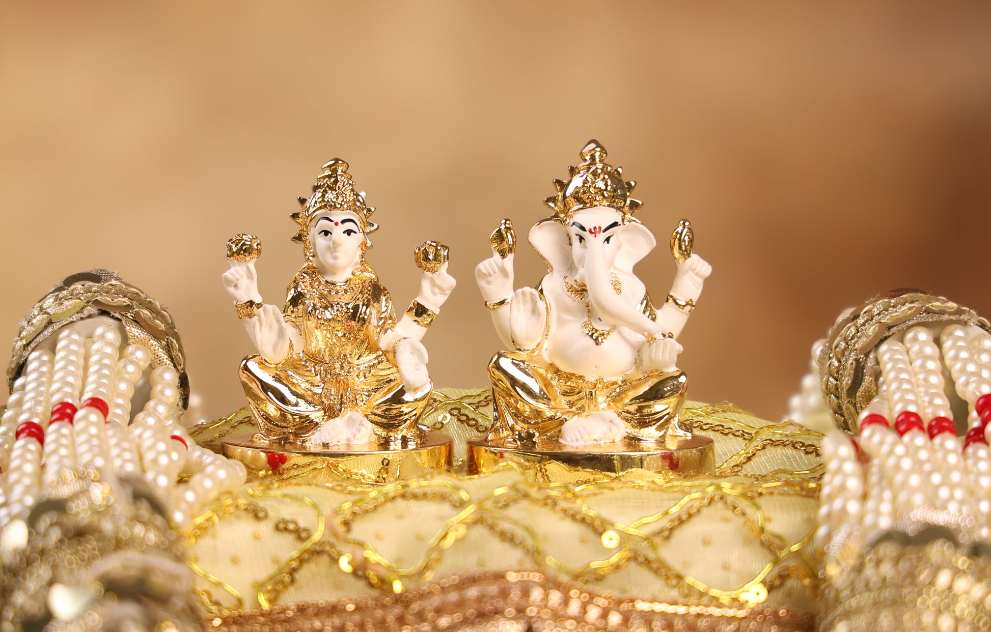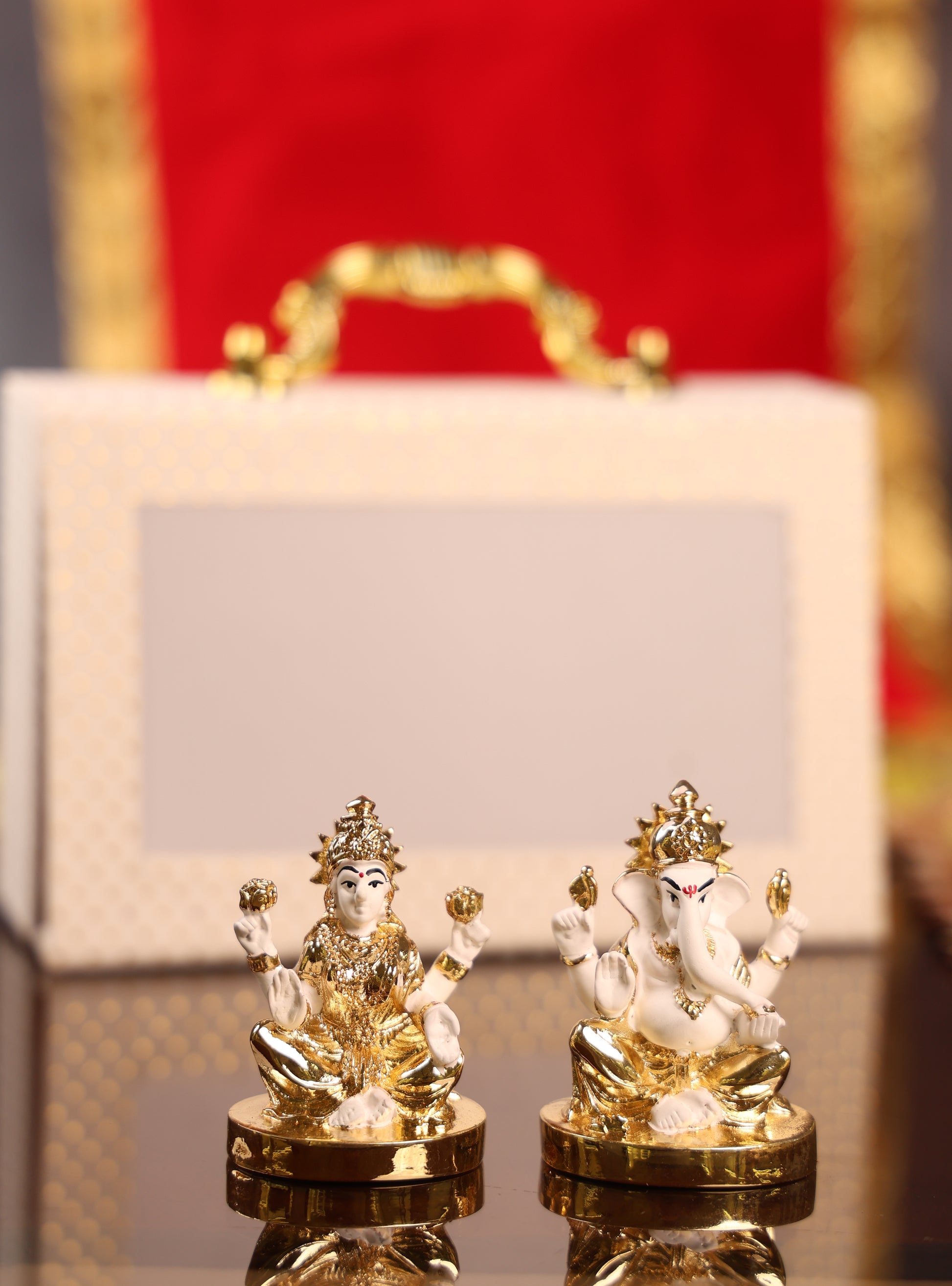 Divine Duo Figurines – Lakshmi & Ganesha In Gold