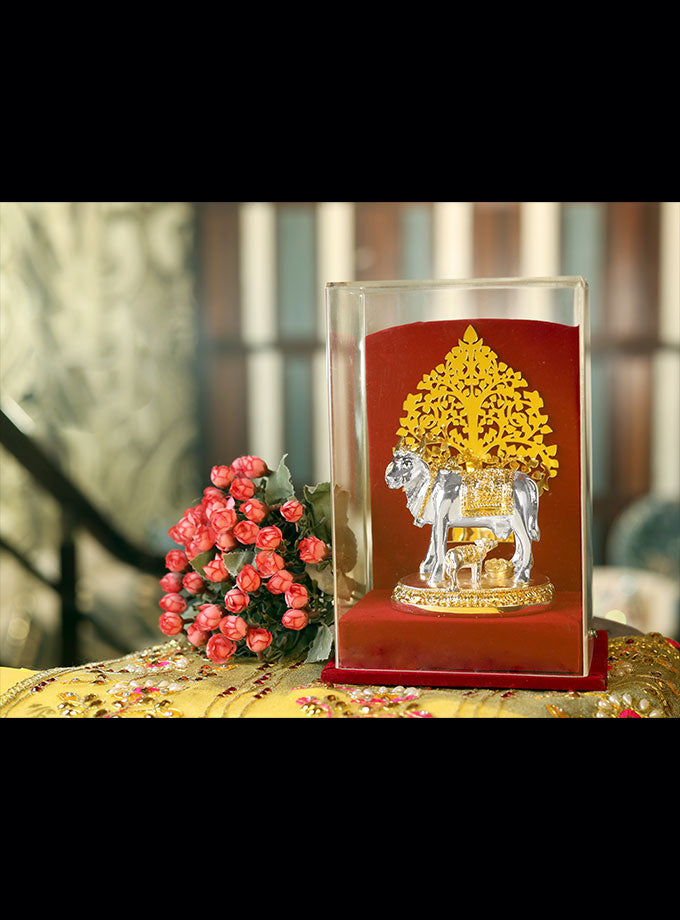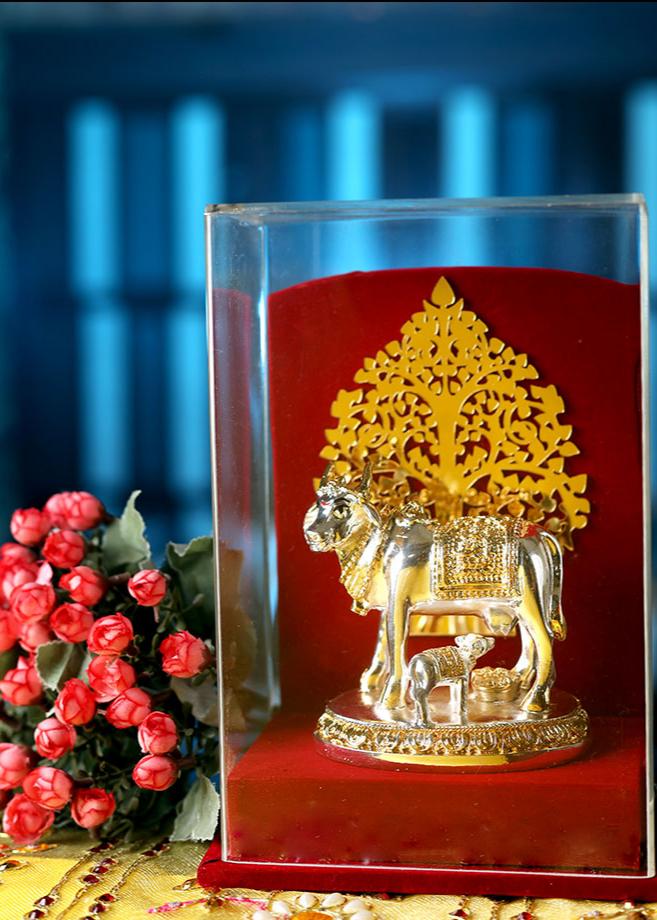 Enhance your home with positive energy and happiness. This cow for mandir is studded with stones that add charm and spread divine love all around your pooja room According to Hindu mythology, a cow is an embodiment of all the 33 crore Gods of Hinduism. And since Krisha loved milk, butter, and all other dairy products that a cow produces, one should also keep a cow and calf statue in his home temple.