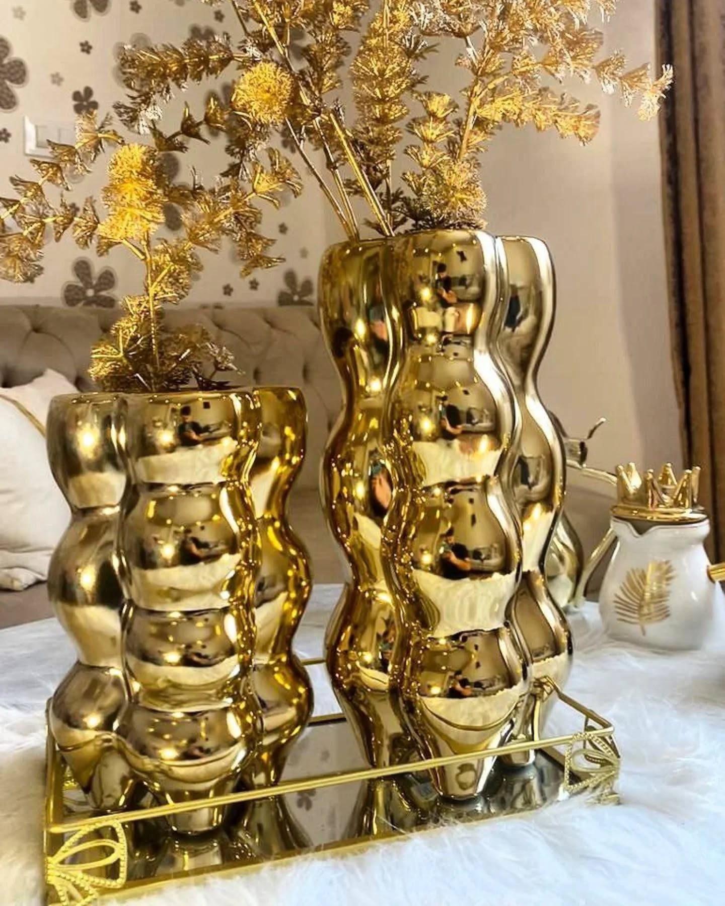 Bring a touch of modern sophistication to your home with the Modern Elegance Ceramic Vase Set. These striking vases, with their white ceramic finish and subtle golden cracks, are a beautiful blend of minimalism and luxury. Perfect for displaying your favorite flowers or decorative branches, they effortlessly add a contemporary flair to any room.