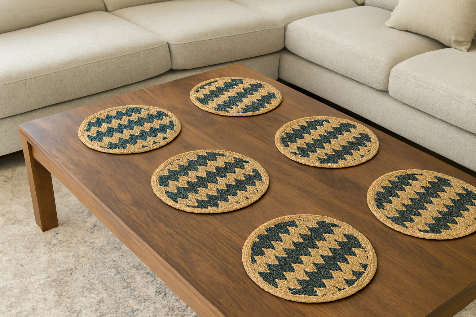 Handcrafted Jute Round Table Mats – Set of 6 (40cm)