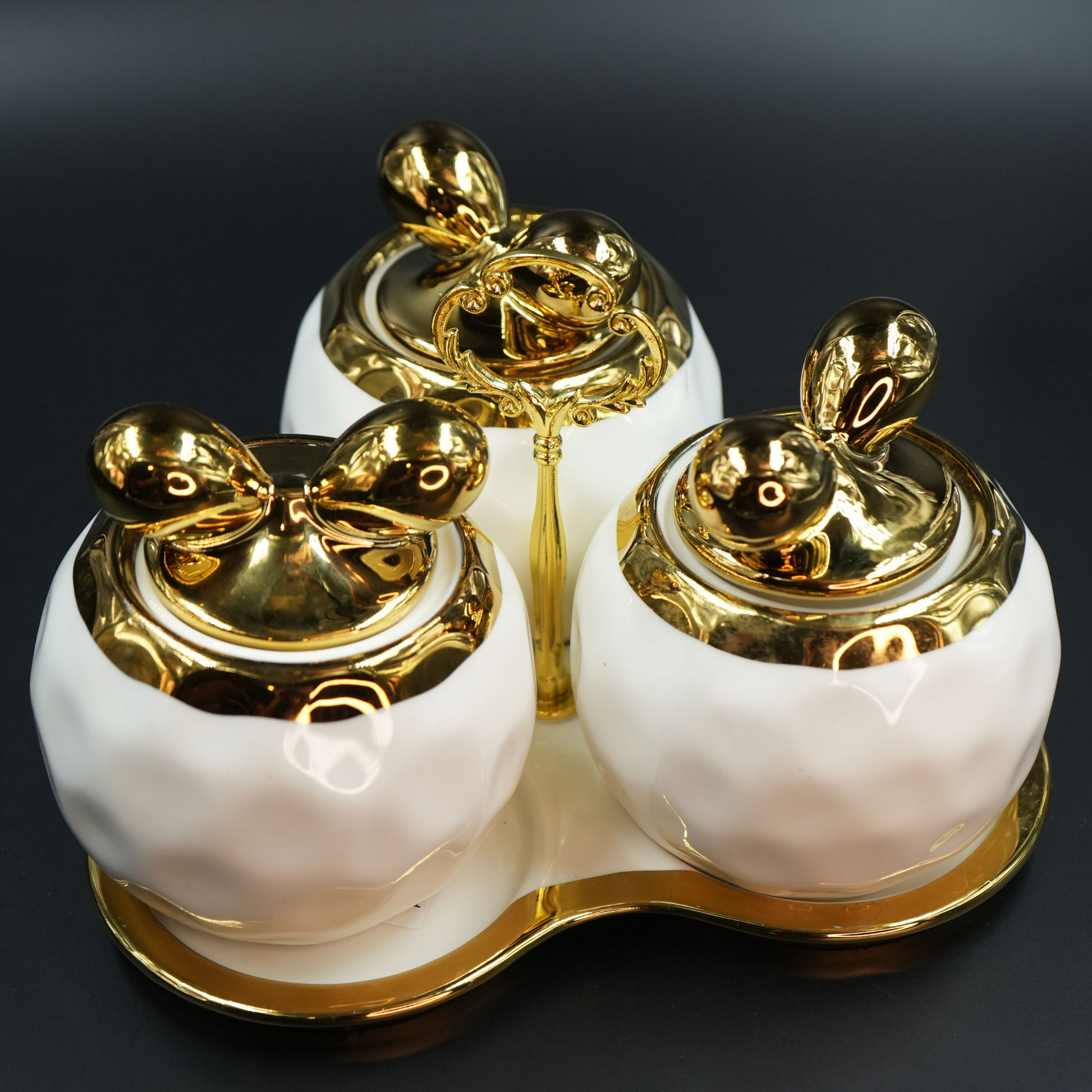 Luxury Golden Ceramic Jar Set with Tray (3 Pieces)