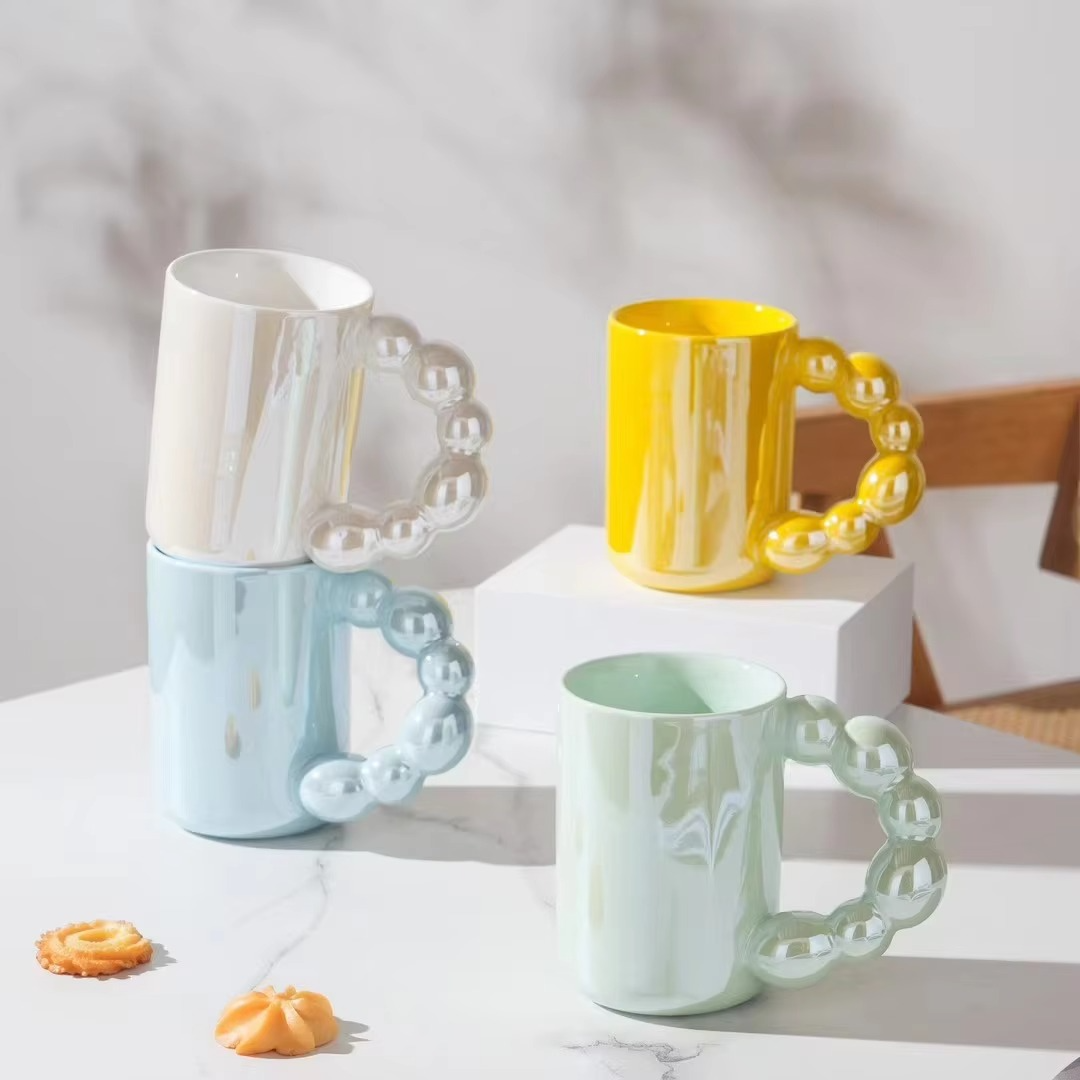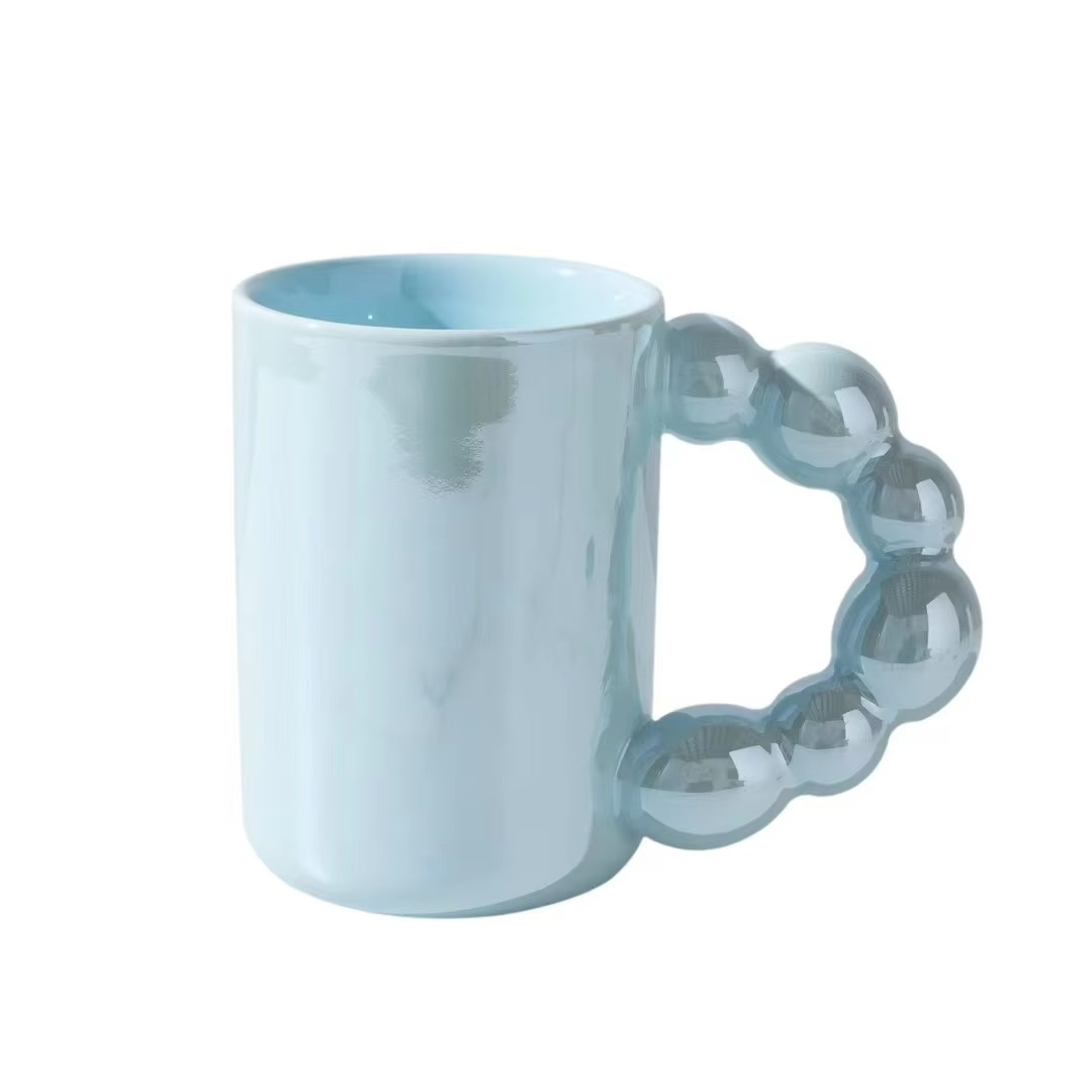 Sip in style with this sleek ceramic mug featuring a glossy pastel finish and a unique bubble-style handle that adds a playful yet modern touch. Ergonomically designed for a comfortable grip and crafted with high-quality glaze, this mug is perfect for your daily coffee, tea, or hot chocolate.