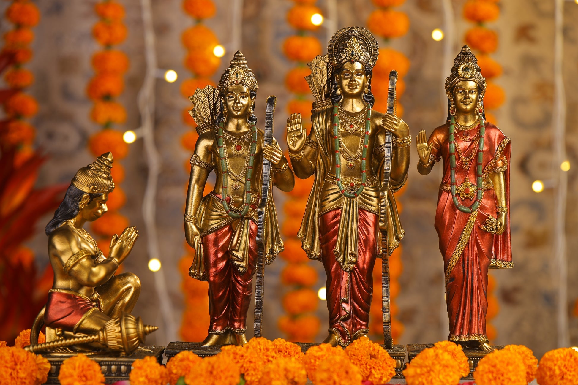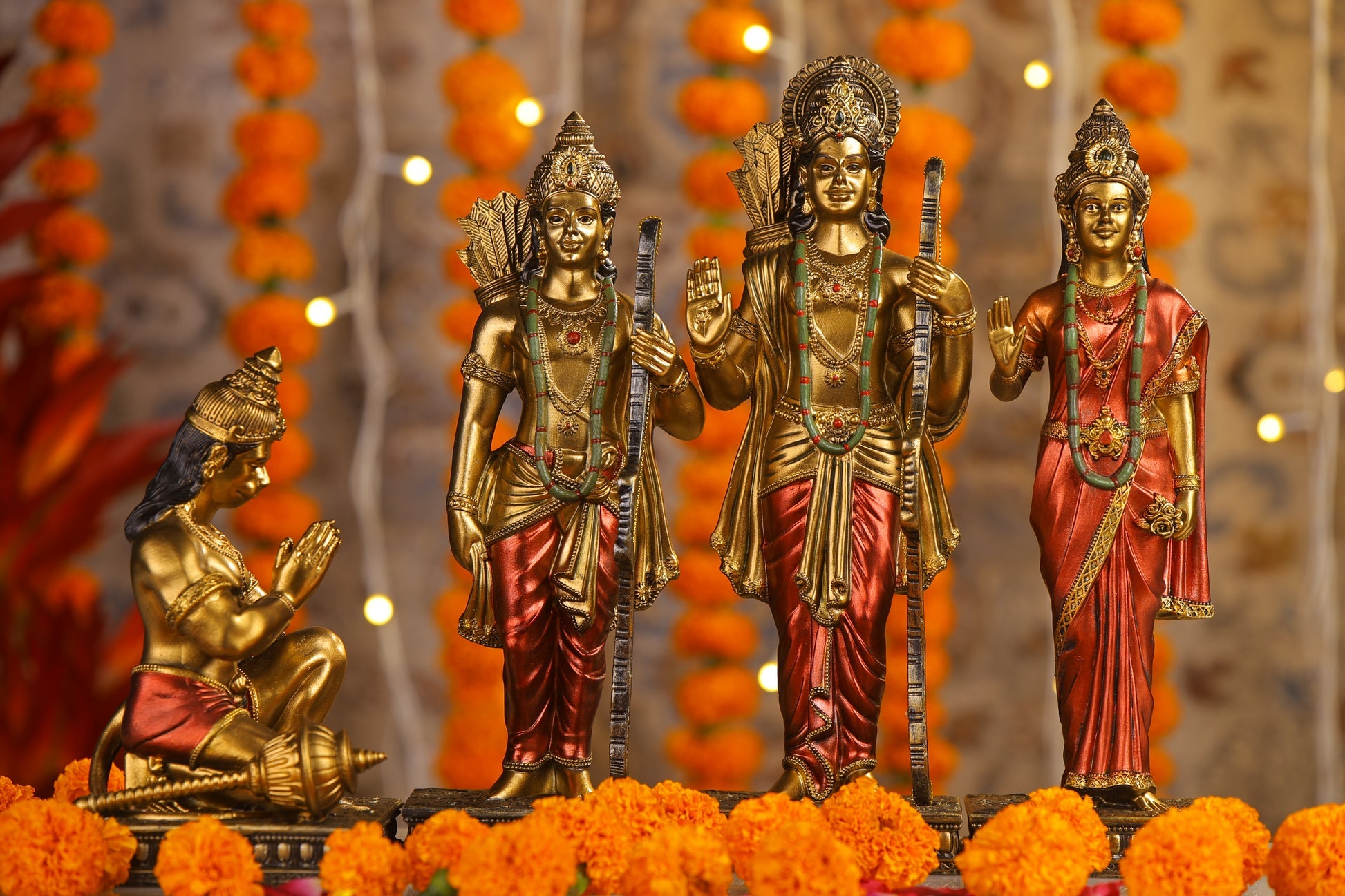 Ram Darbar Antique Finish golden red statue